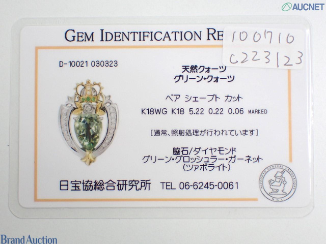 K18WG/K18 グリーンクォーツ5.22ct D0.22ct G0.06ct