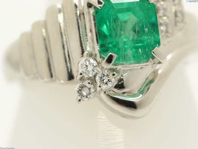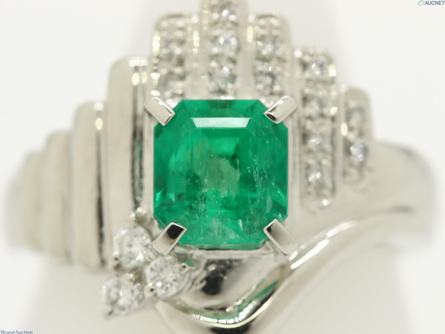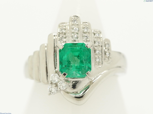Pt900 10.8g エメラルド1.29ct D0.14ct リング #12