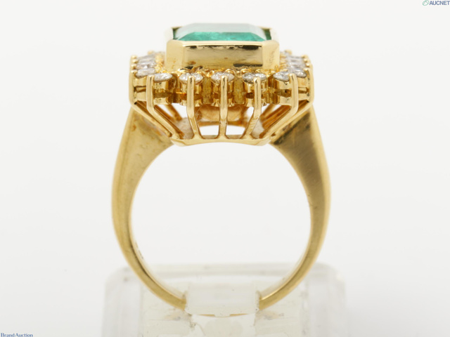 天然ベリル・エメラルド・リング・K18保証・12.7g・#約12 ダイヤ