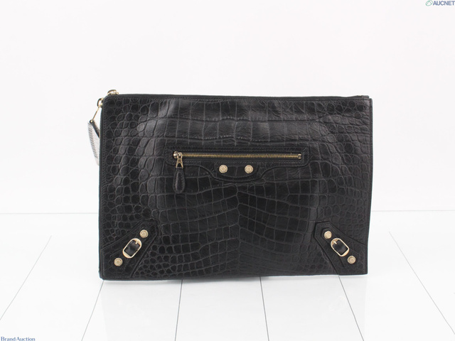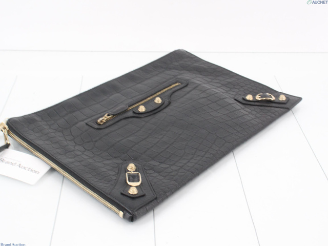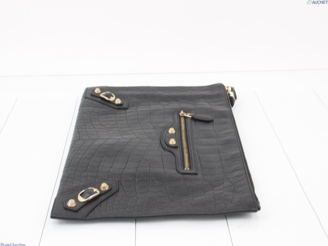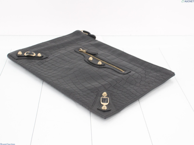 レザー クロコ型押し クラッチバッグ ブラック