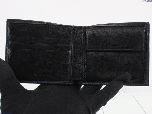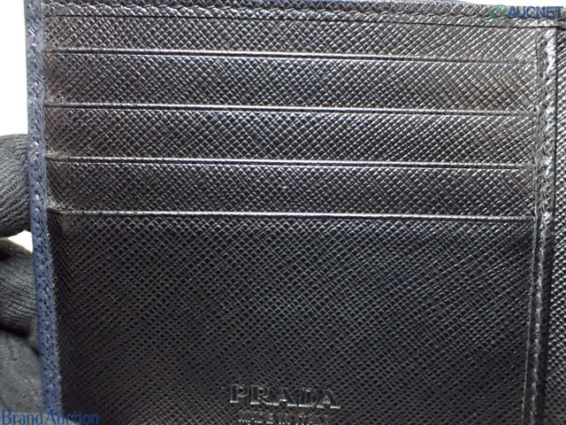 プラダ 二つ折り財布 ネイビー/ブラック