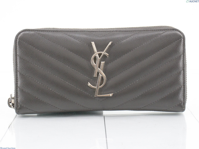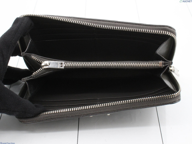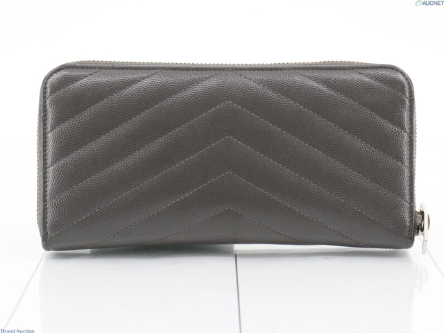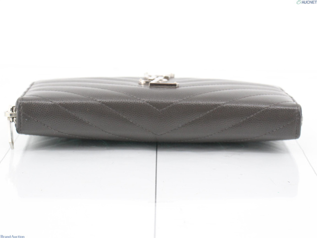 カサンドラロゴ ラウンドファスナー 財布 キャビアスキン グレー