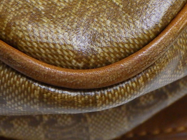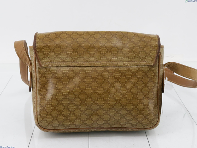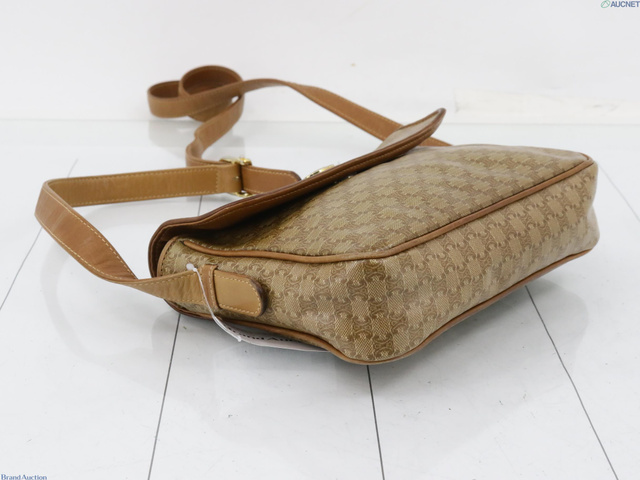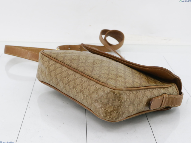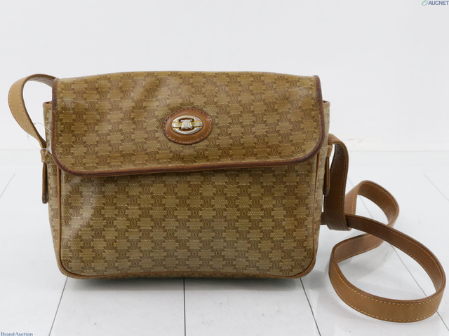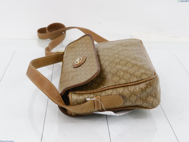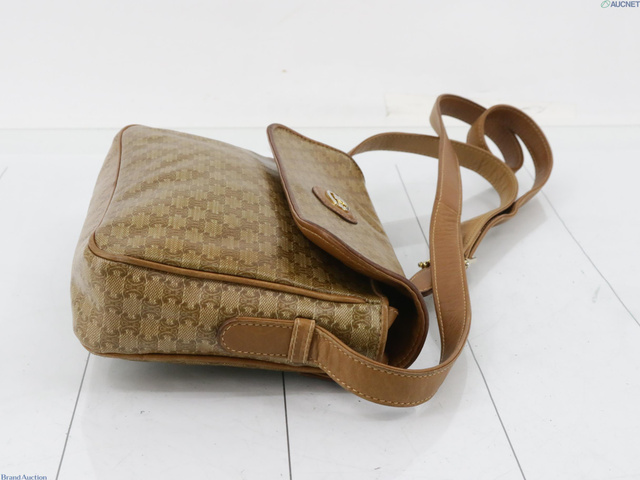 PVC×レザー ショルダーバッグ マカダム柄 ブラウン