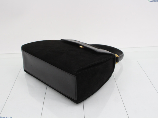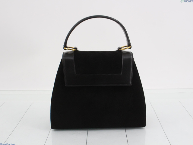 スエード/レザー ハンドバック ブラック