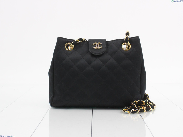 マトラッセ ショルダーバッグ ココマーク 黒 サテン ビジュー 0番台