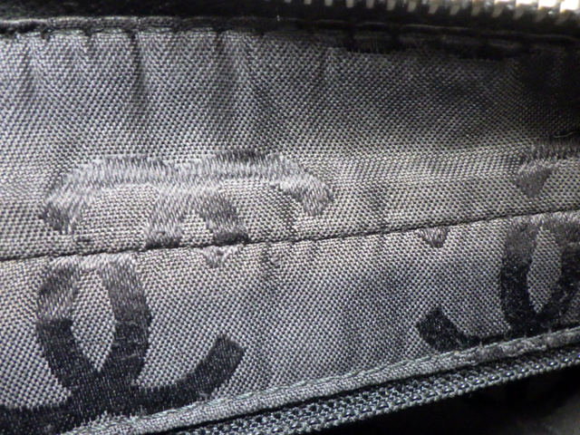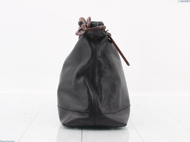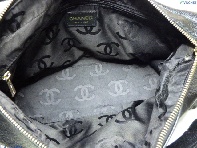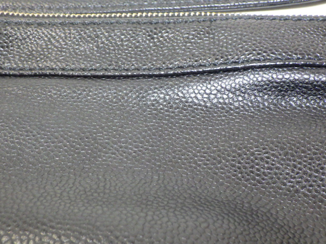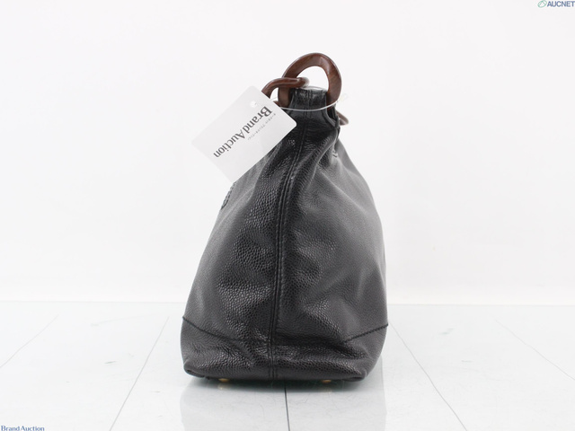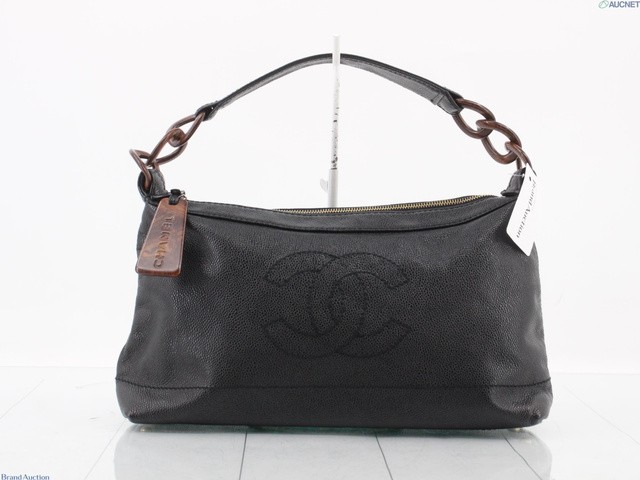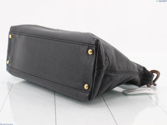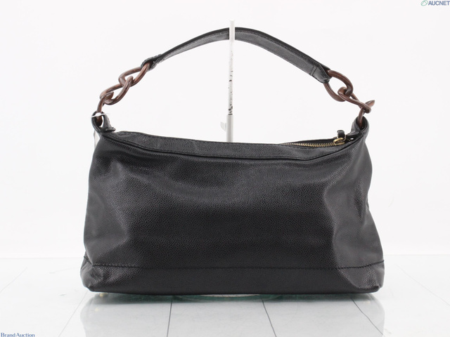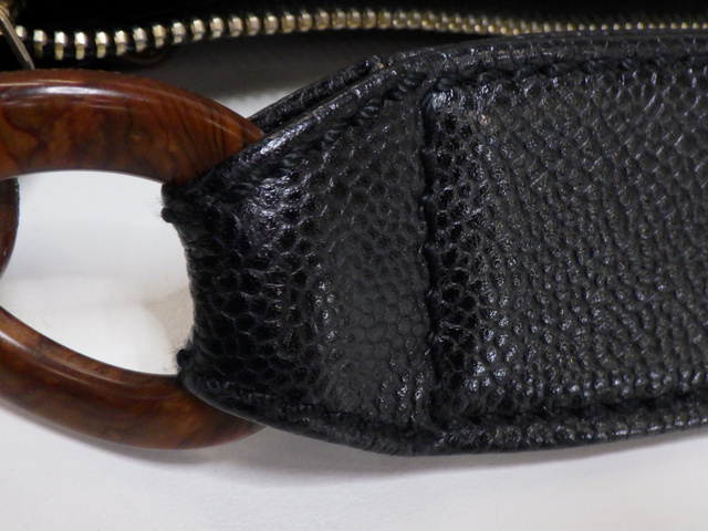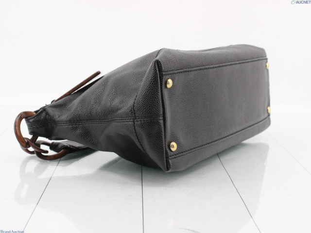 キャビアスキン ウッドチェーンハンドバッグ ブラック 7番台
