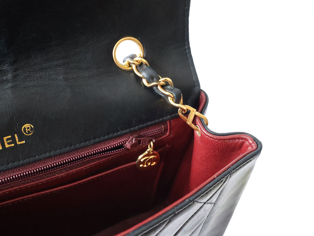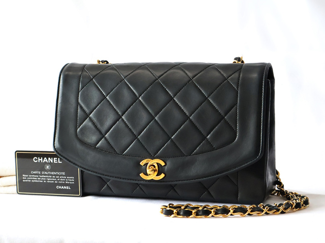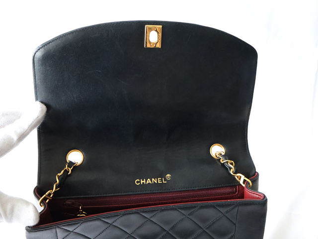 ダイアナ マトラッセ ラムスキン チェーンショルダー ブラック
