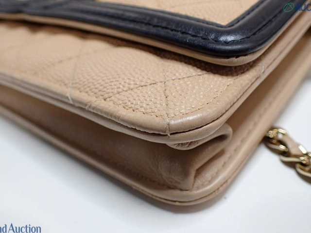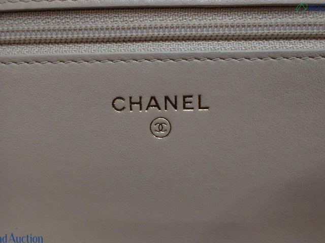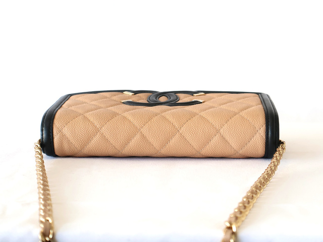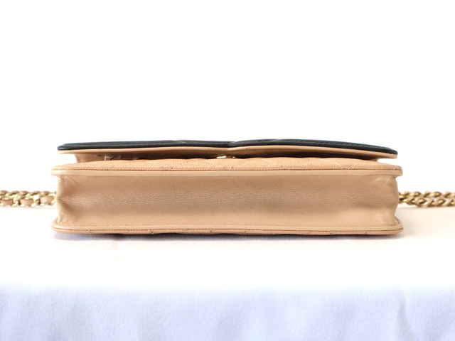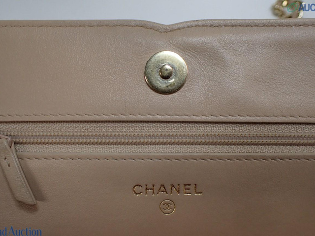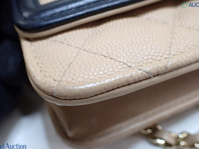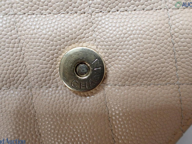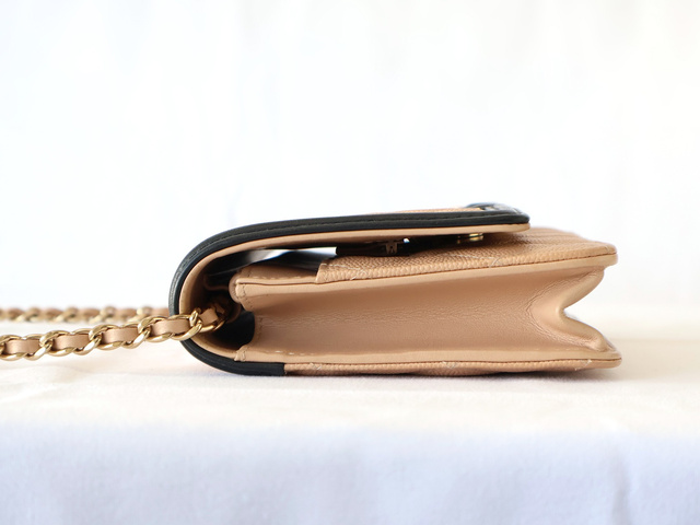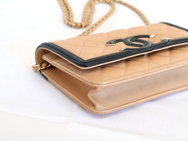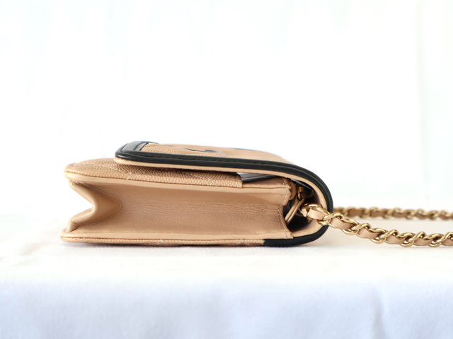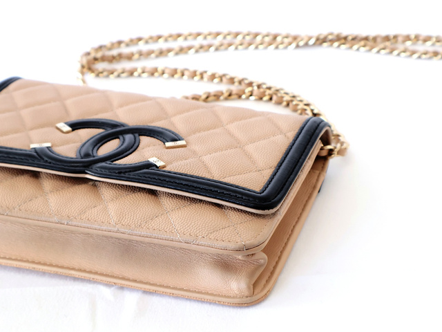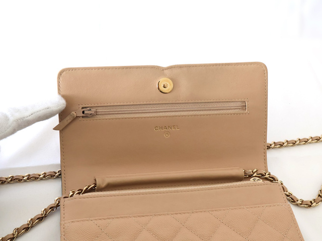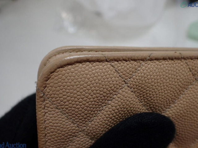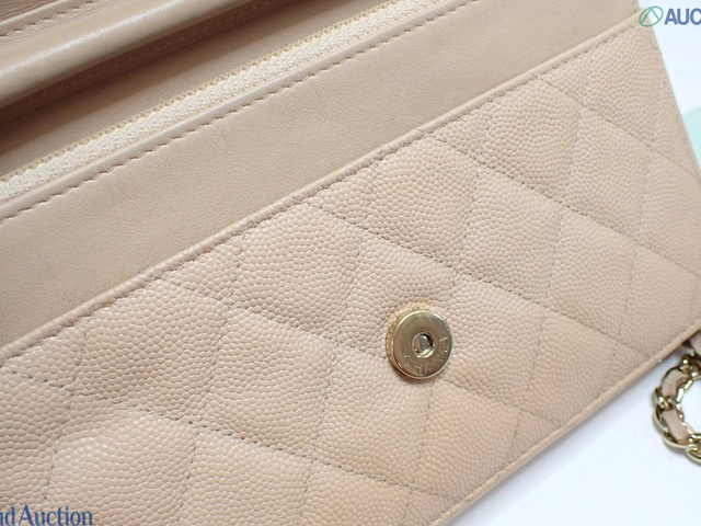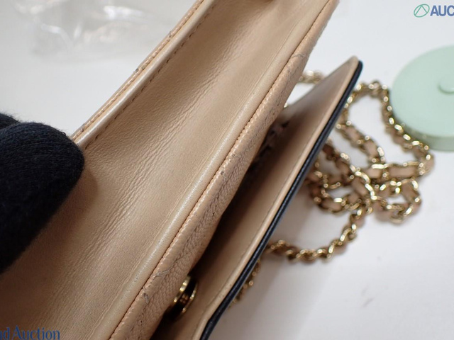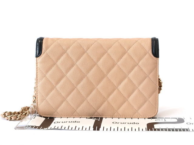 CCフィリグリー キャビアスキン チェーンウォレット ショルダー ベージュ