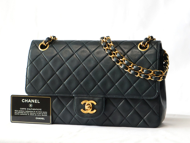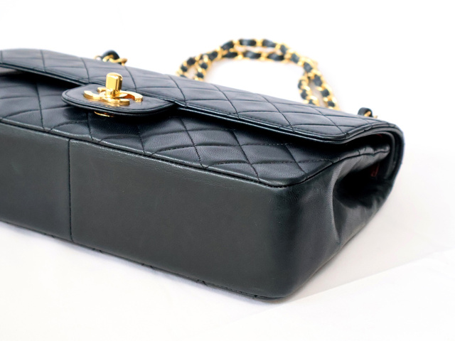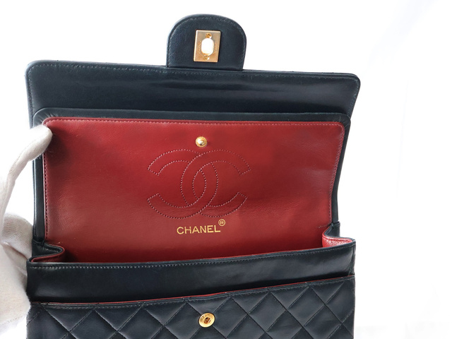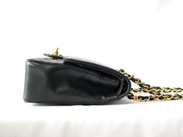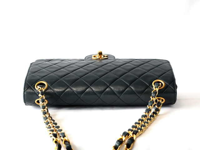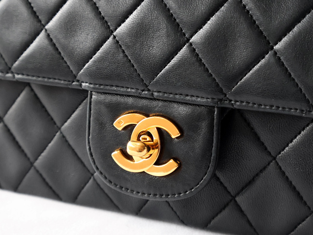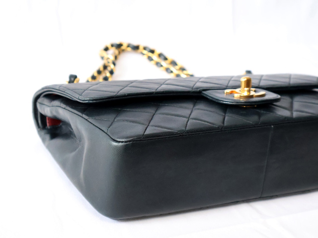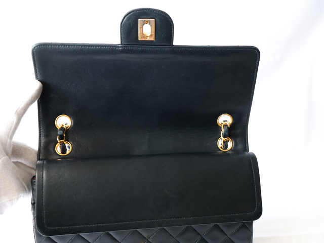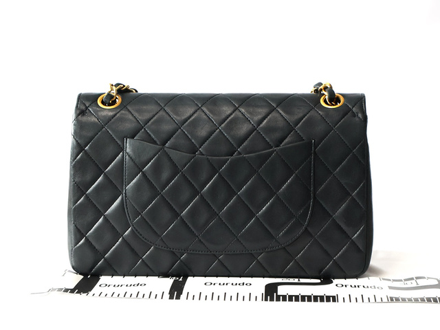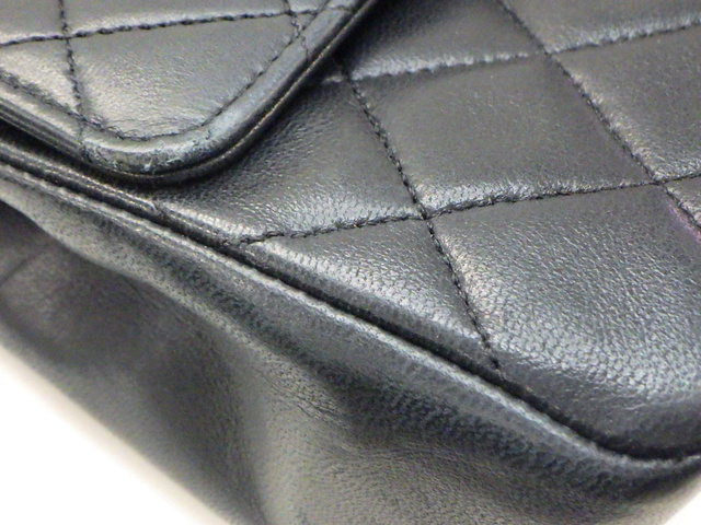 マトラッセ 25 ラムスキン Wフラップ Wチェーン ショルダー ブラック