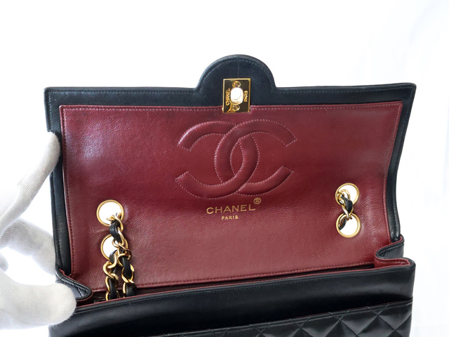 マトラッセ ラムスキン Wチェーンショルダー ブラック