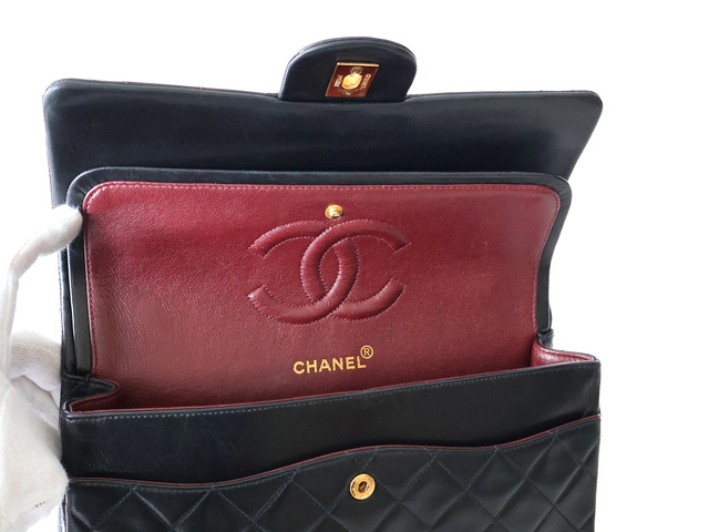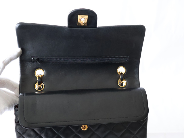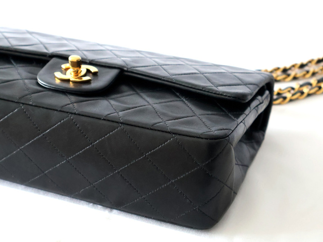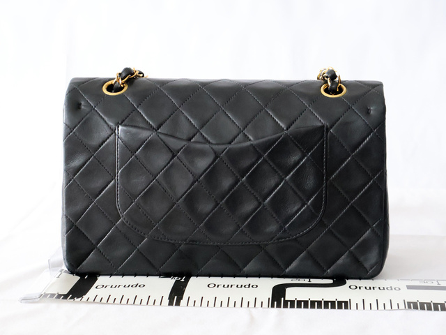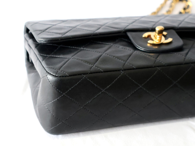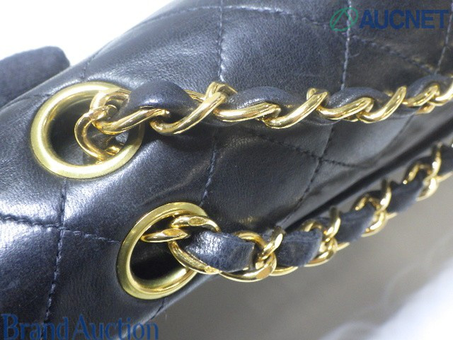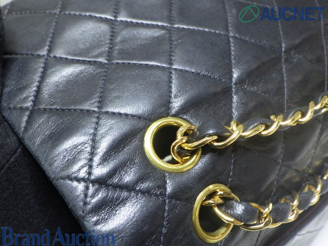 マトラッセ 25 ラムスキン Wフラップ Wチェーンショルダー ブラック