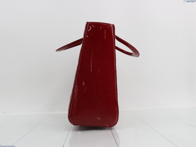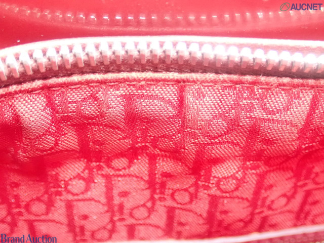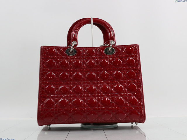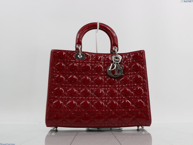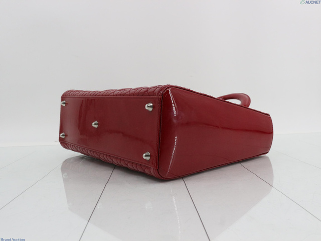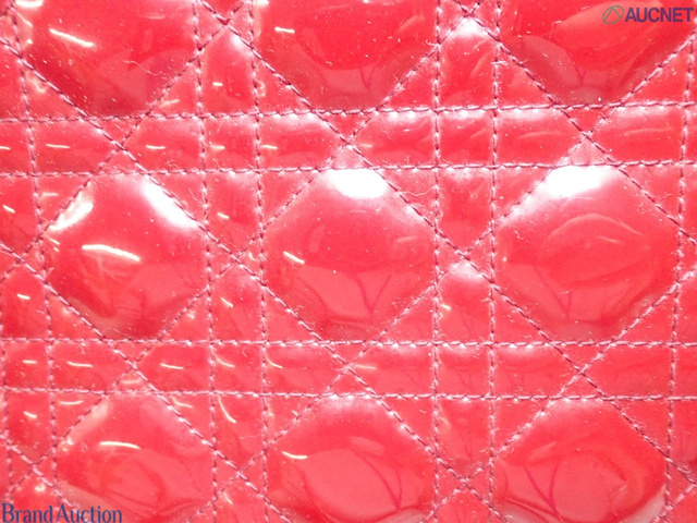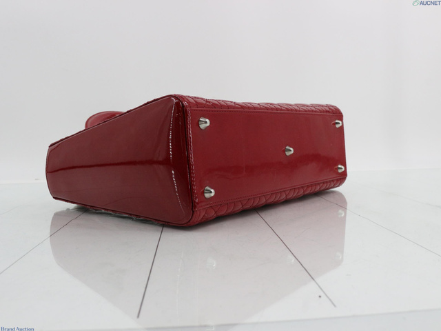 レディディオール カナージュ エナメル 2WAY ハンドバッグ レッド系