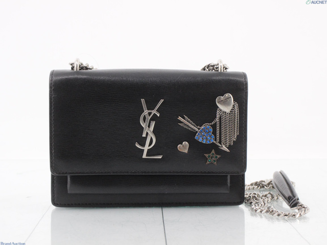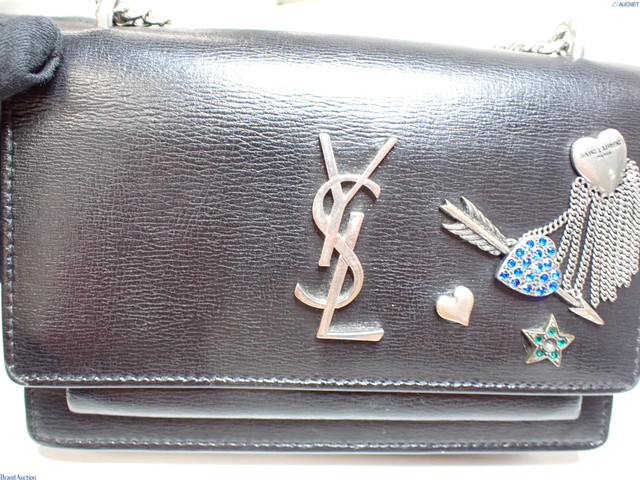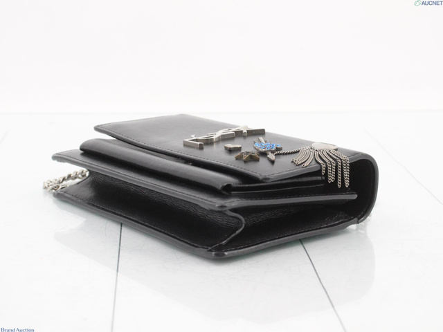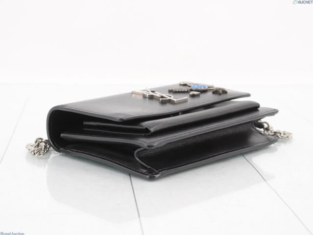 サンセット レザー ビジュー チェーンウォレット ブラック