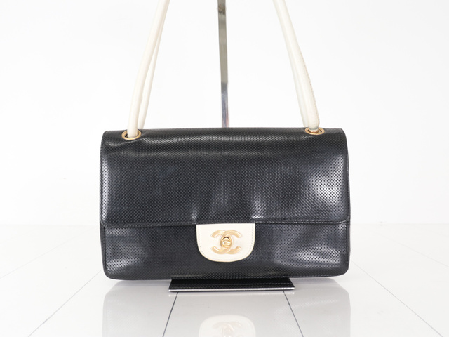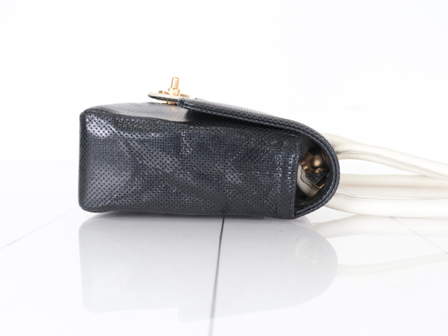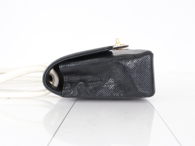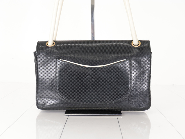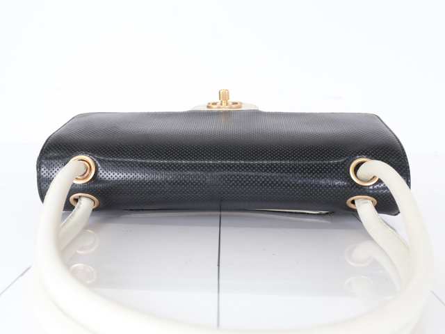 パンチングレザー バイカラー ショルダー ブラック/アイボリー 6番台