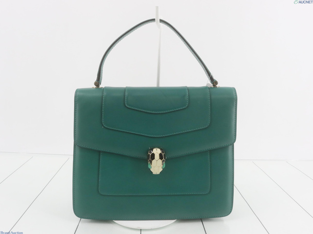 セルペンティ レザー 2WAY ハンドバッグ グリーン