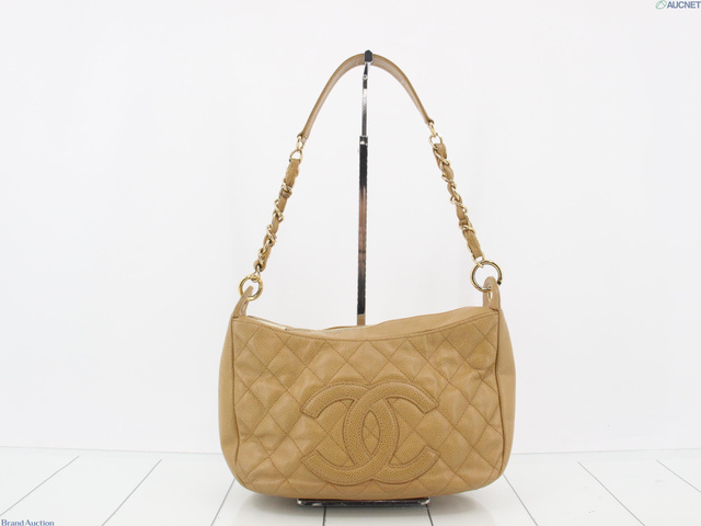 キャビアスキン ショルダーバッグ ベージュ