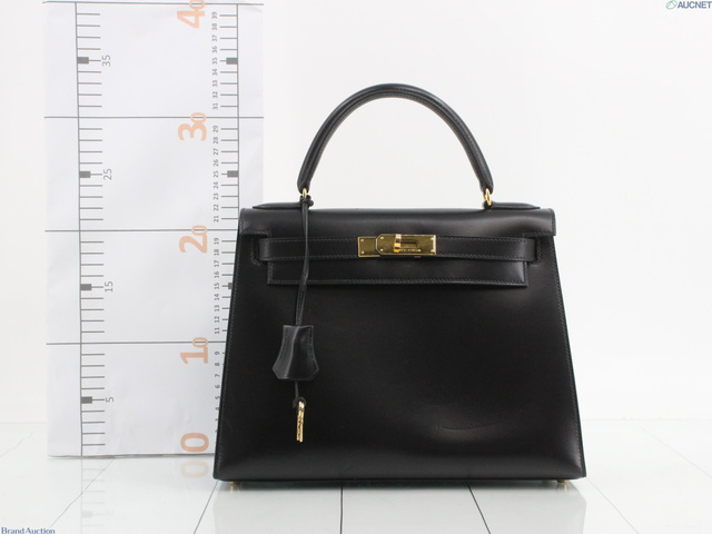 ケリー28 外縫い 2WAY BOXカーフ 黒 〇W刻 28x22x12cm