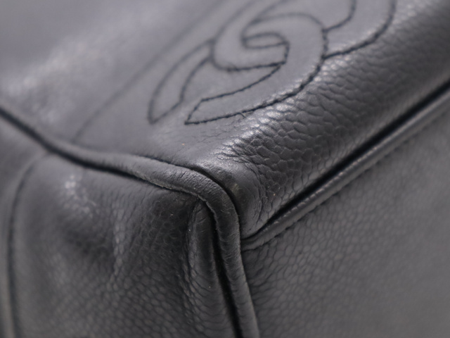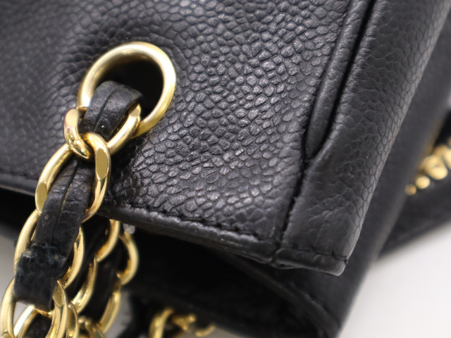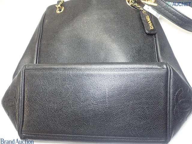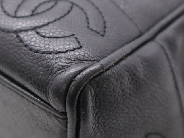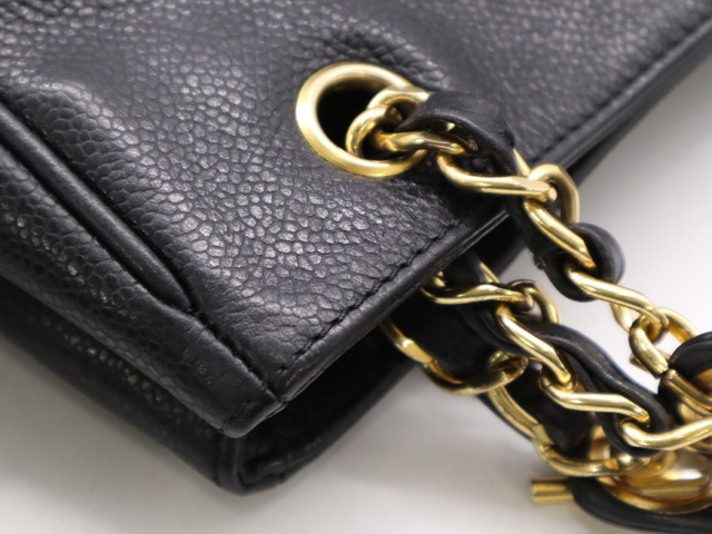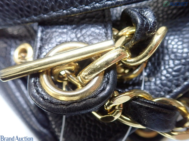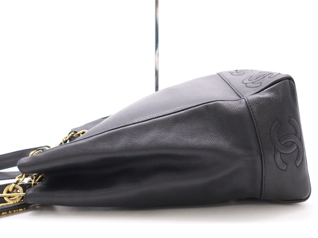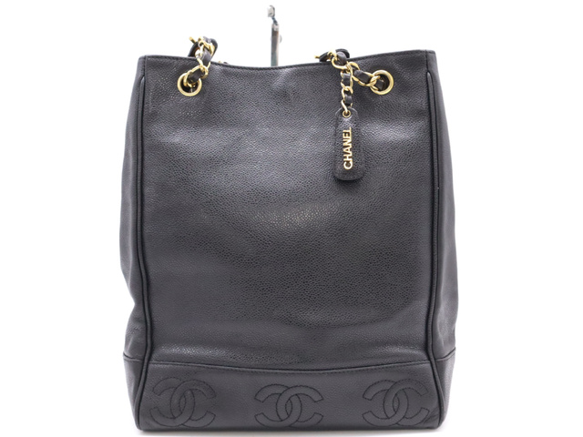 キャビアスキントリプルココ チェーントートバッグ GD金具 ブラック