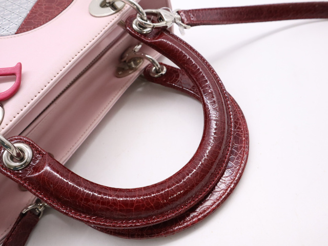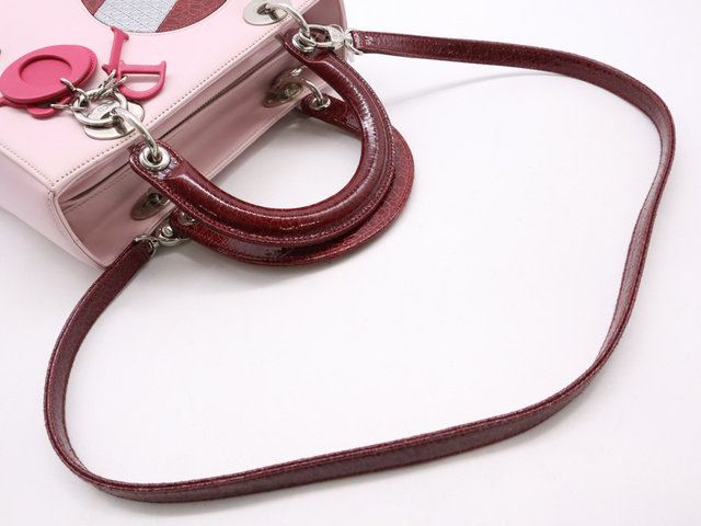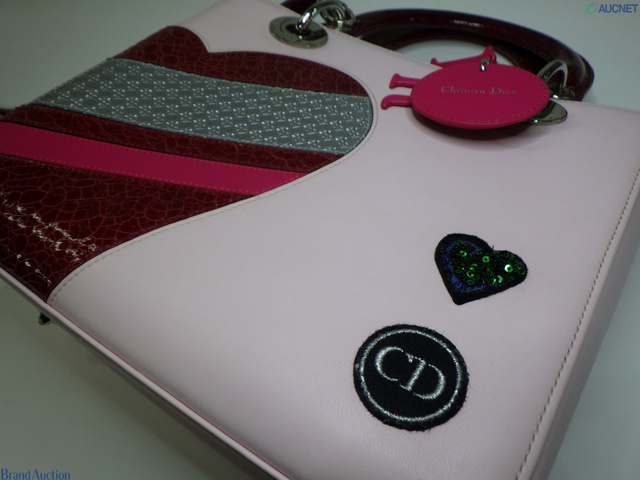 レザー レディディオール パッチワーク ハート ピンク