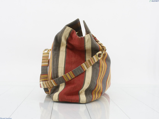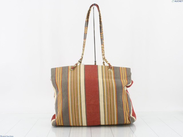 シャネル ストライプ柄 布 ベージュ系 トートバッグ
