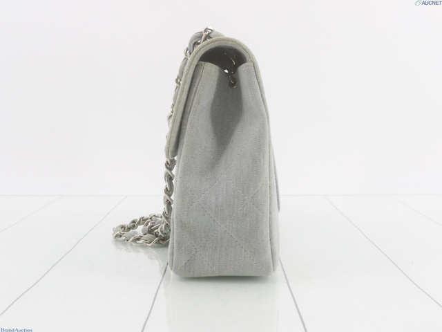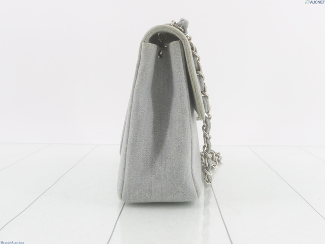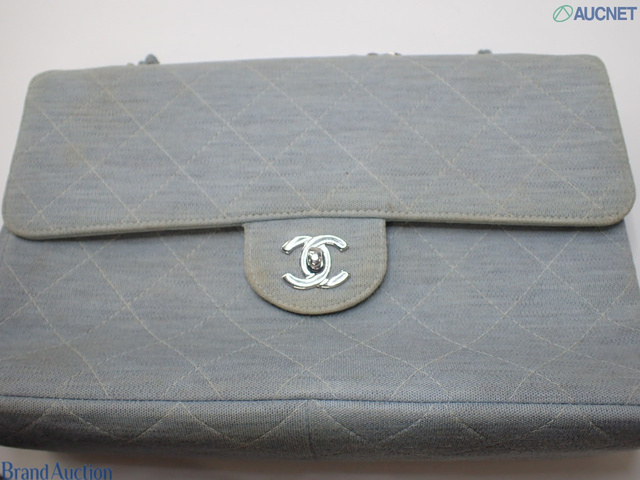マトラッセ コットン シングルフラップ シングルチェーンバッグ ブルー