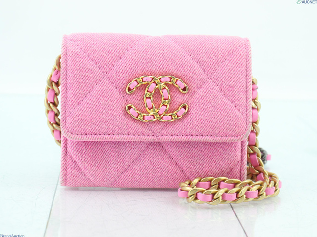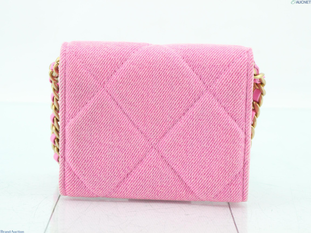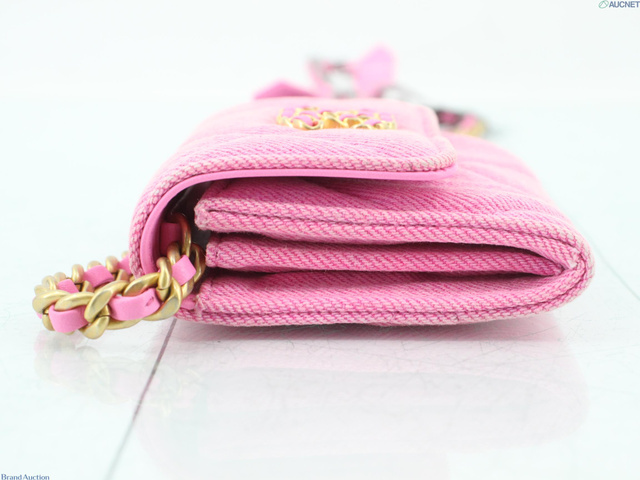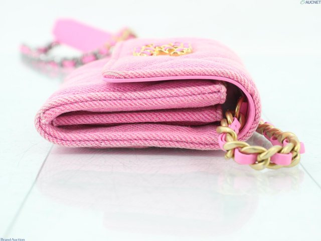 シャネル19 デニム チェーンケース ピンク
