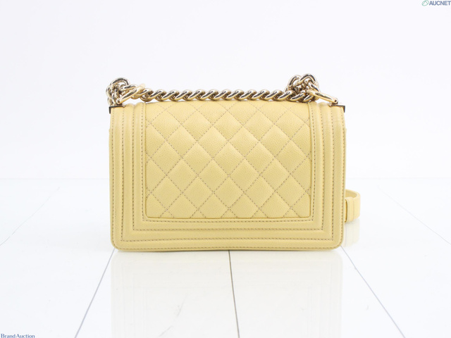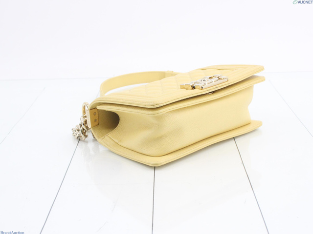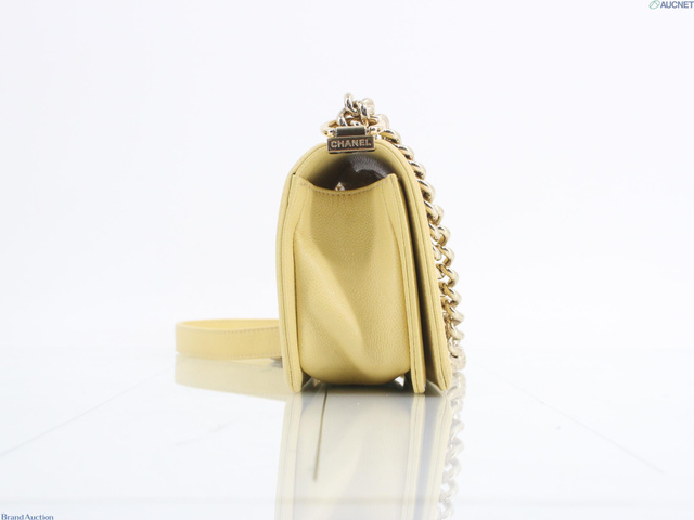 ボーイシャネル キャビアスキン チェーンショルダーバッグ イエロー系