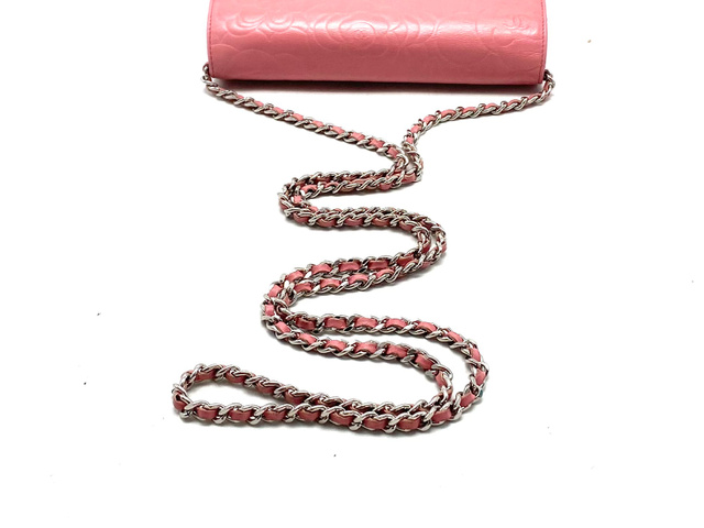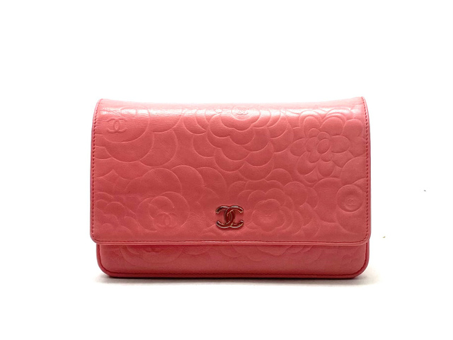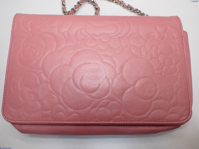 シャネル カメリア ラムスキン チェーン ショルダー ウォレット バッグ