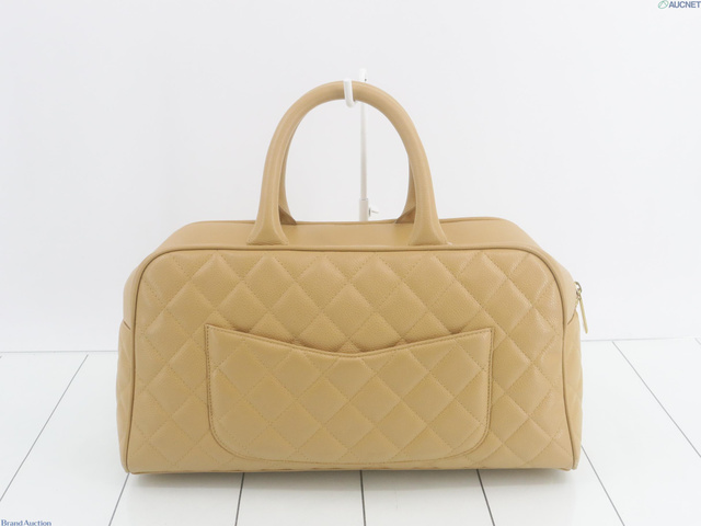 ボストンバッグ ベージュ キャビア
