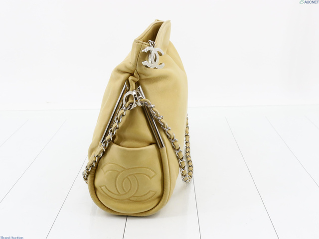 チェーンショルダーバッグ ベージュ レザー