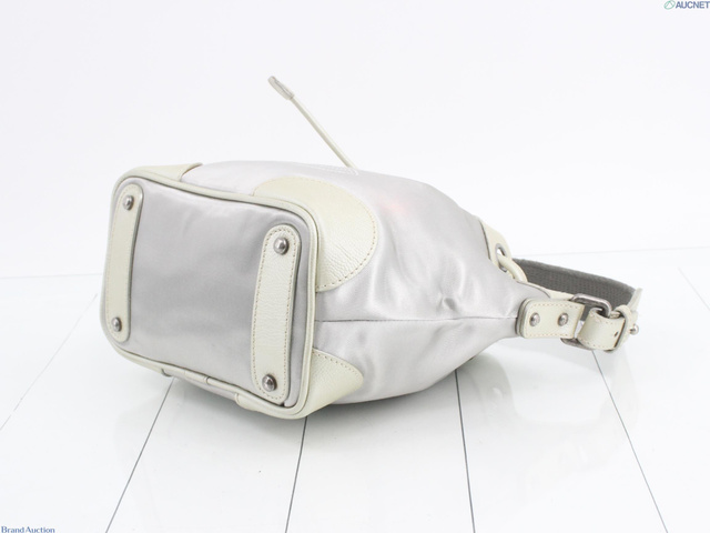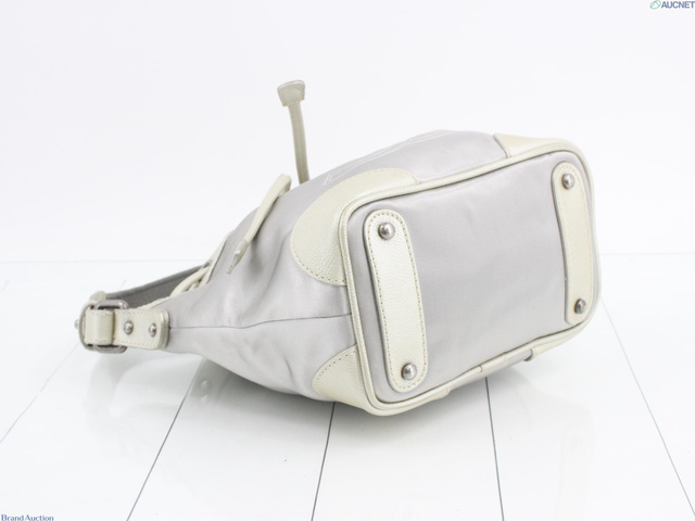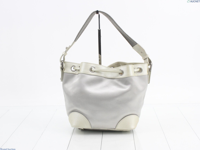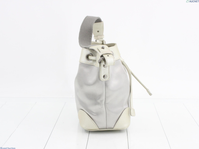 ココマーク巾着ショルダー グレー キャンバス レザー