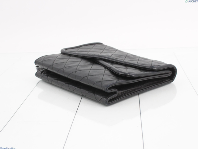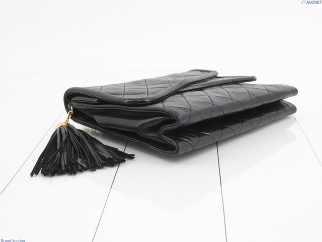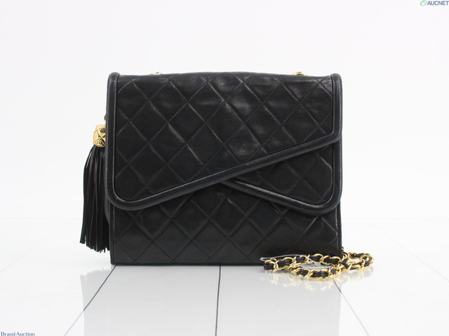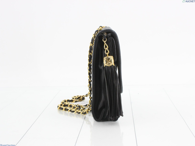 マトラッセ Wフラップフリンジチェーンショルダー ブラック レザー