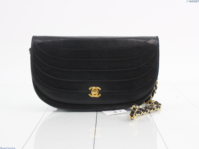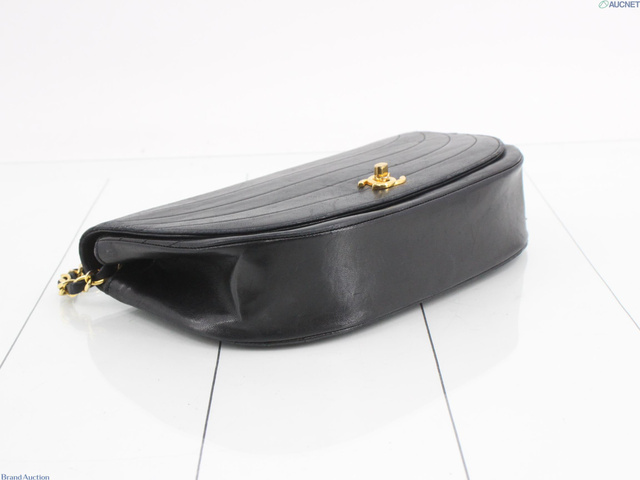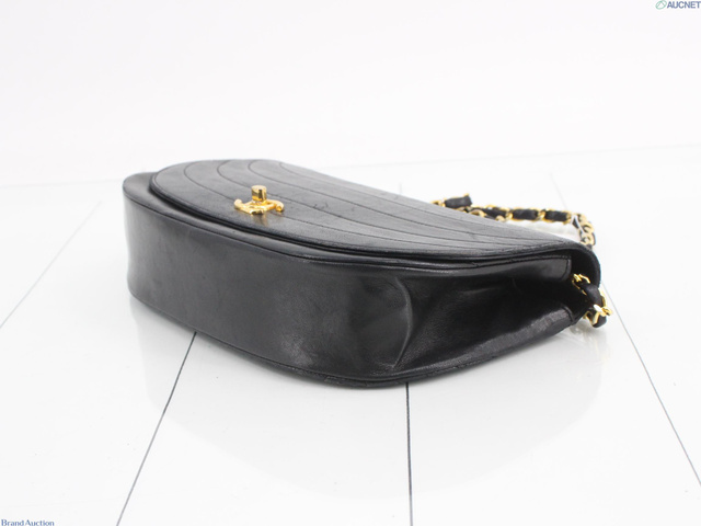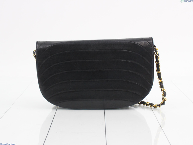 ハーフムーンチェーンショルダー ブラック レザー 内部張替済