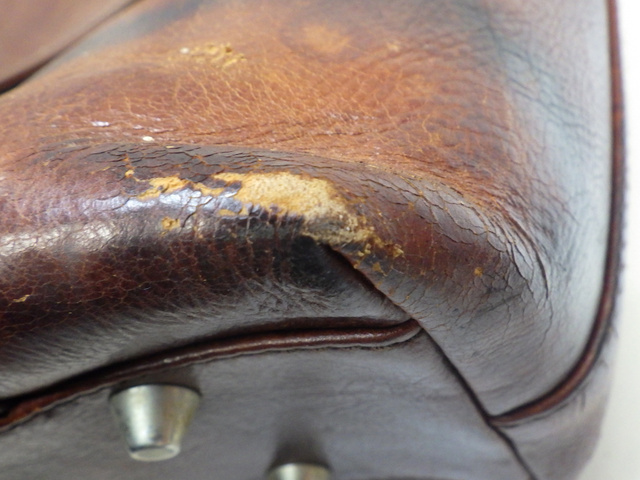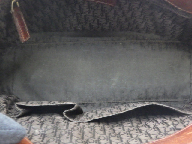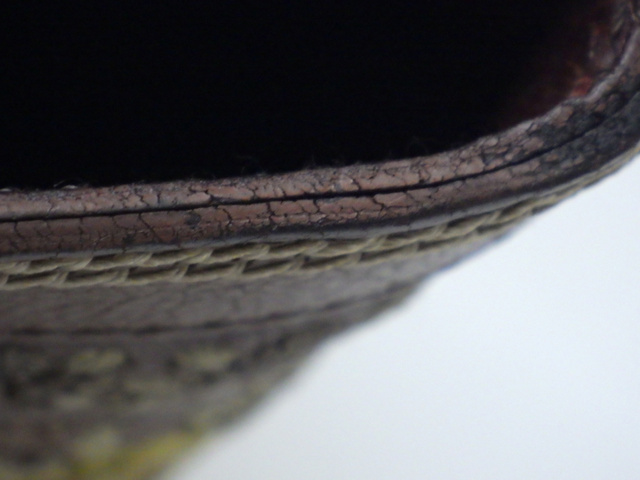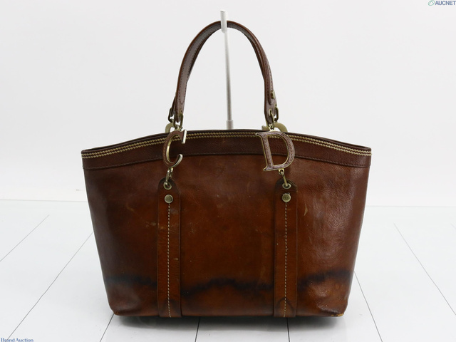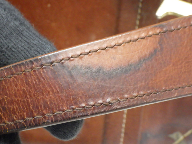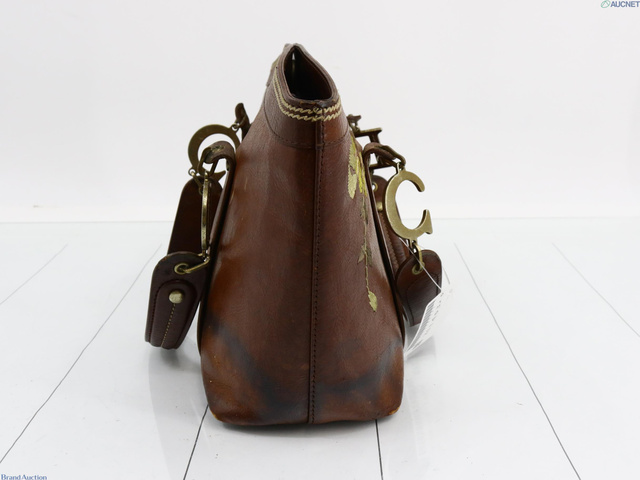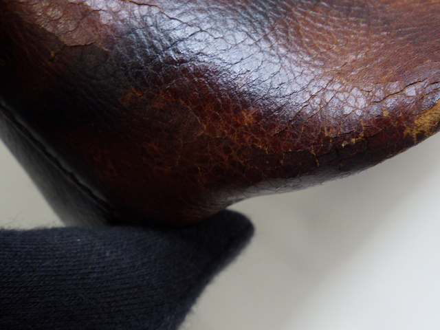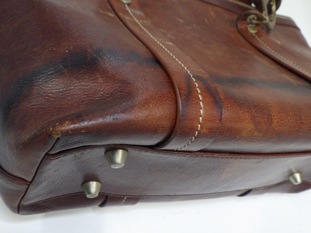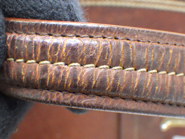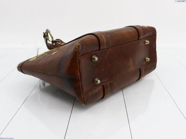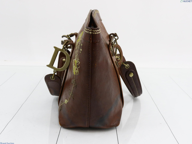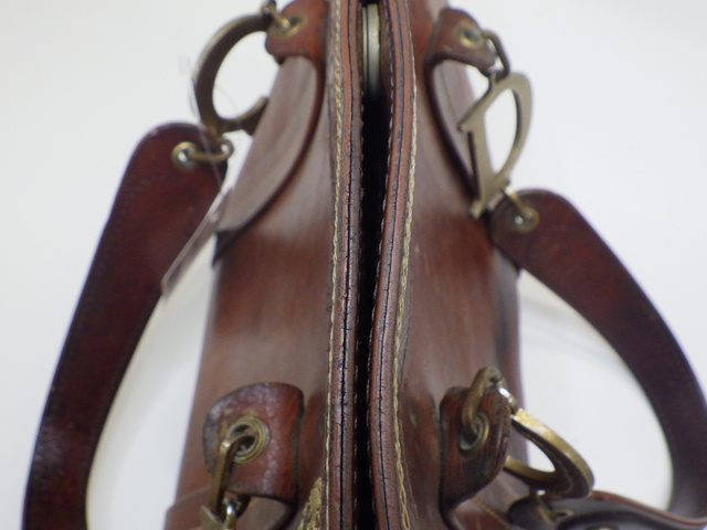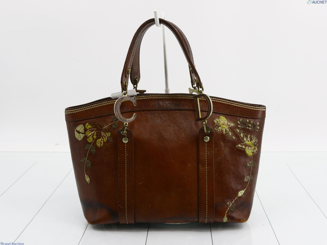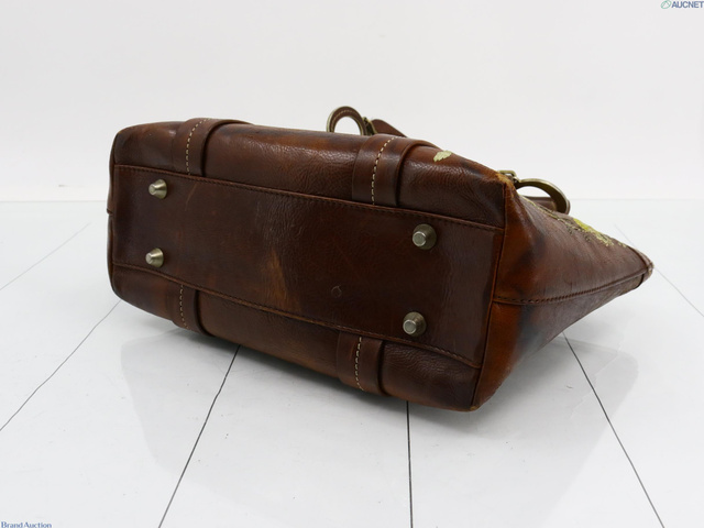 刺繍ハンドバッグ ブラウン レザー 表面はがれ