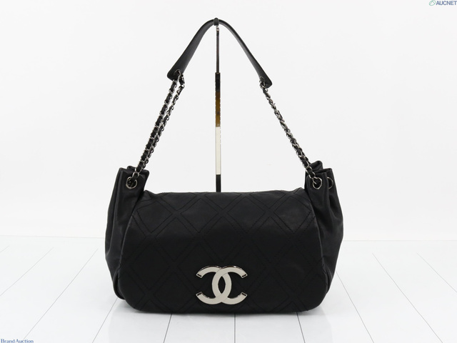 ダイヤステッチ ココマーク レザー チェーン フラップ ショルダーバッグ