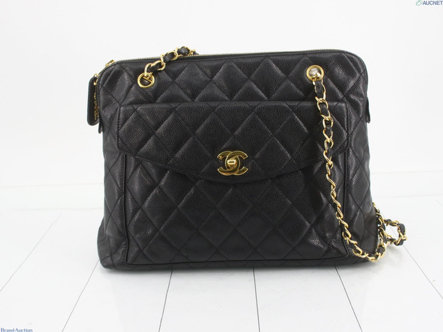 マトラッセ キャビアスキン Wチェーンショルダーバッグ
