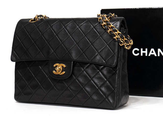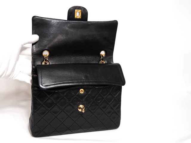 マトラッセ Wフラップ Wチェーン ブラック ラム シリアル
