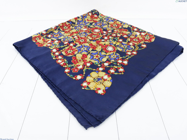 スカーフ ネイビー シルク