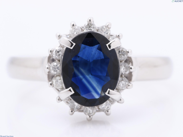 Pt850 サファイア 1.12ct/D0.18ct/4.7gダイヤリング