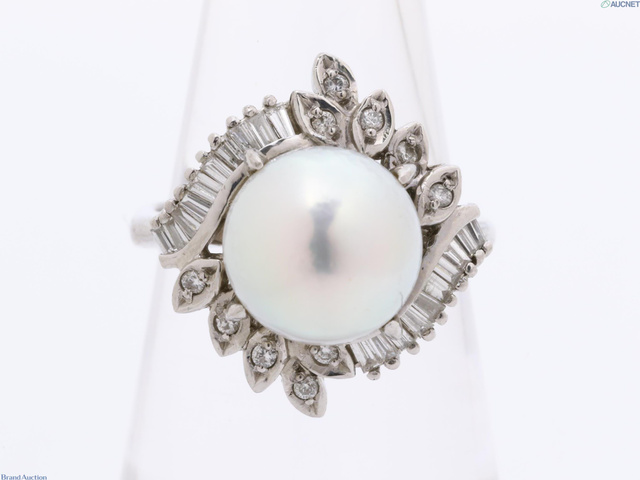 あこやパール Pt900 D0.28ct 7.6g ダイヤリング #9