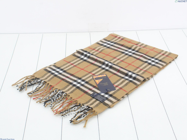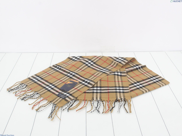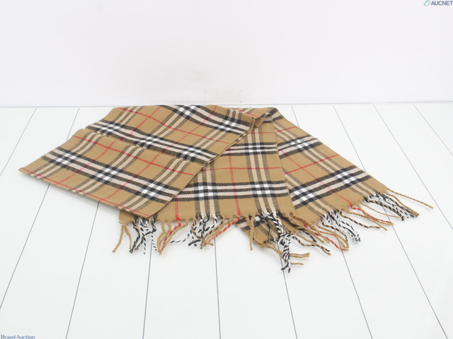 マフラー チェック ベージュ ウール100%