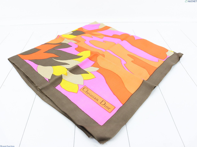 シルク ロゴ オレンジ ピンク ブラウン スカーフ クリスチャンディオール