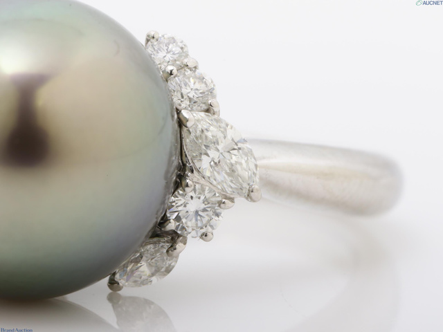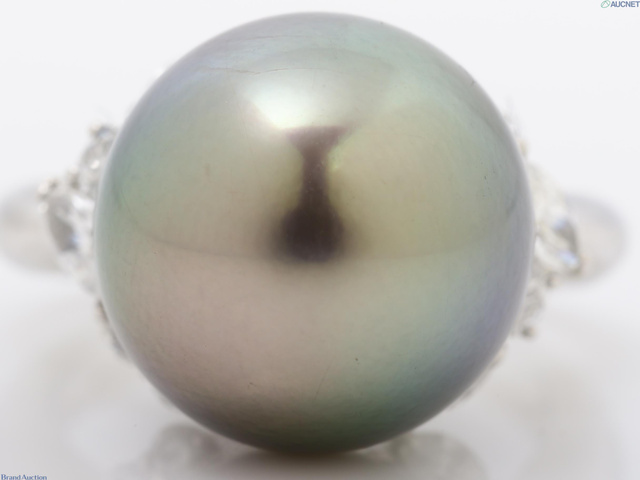 ダイヤモンド0.57ct/黒蝶真珠 径約13.7mm Pt950 リング
