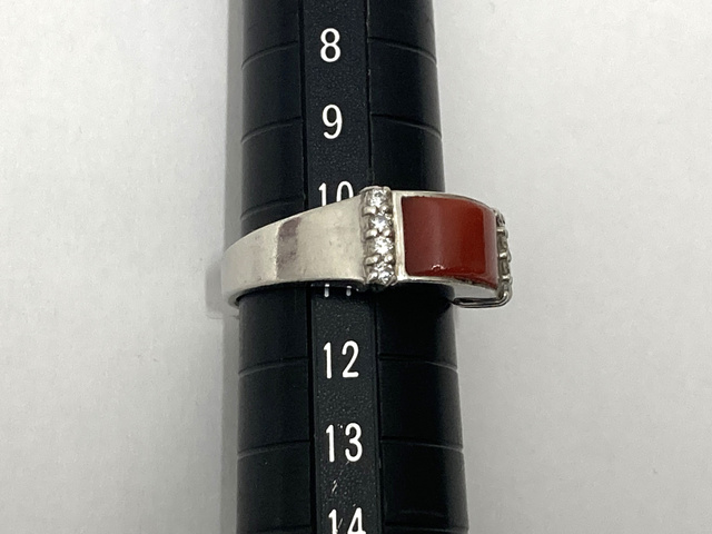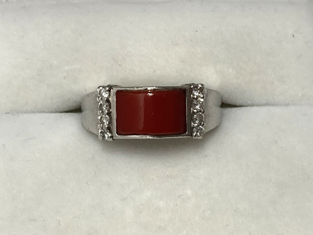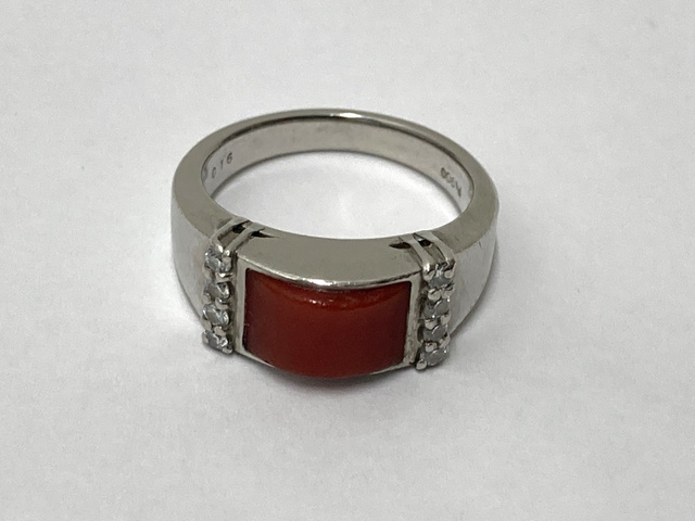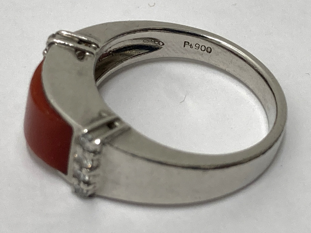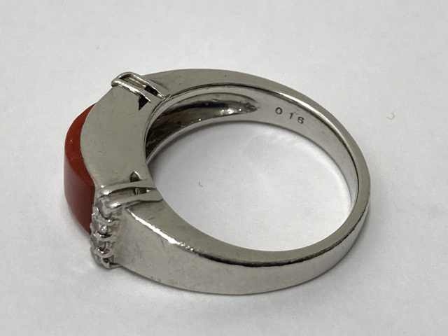 Pt900 リング 赤サンゴ メレダイヤ 0.16ct 8.9g