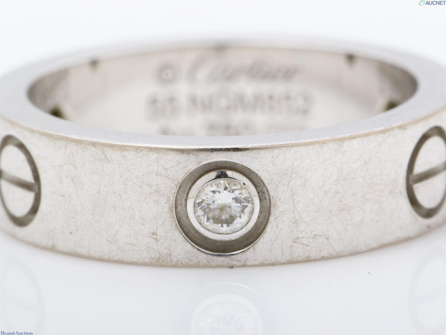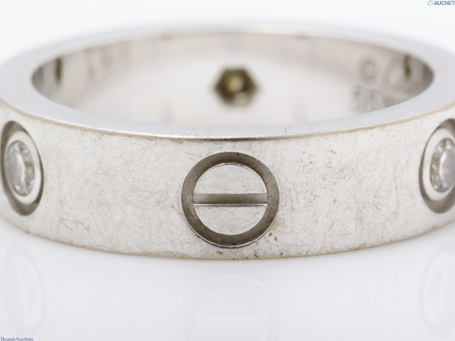 Au750WG ラブ 3Pダイヤ リング 9.6g #55/幅約5.5mm