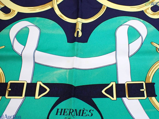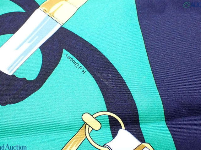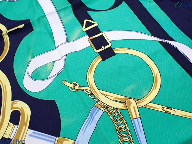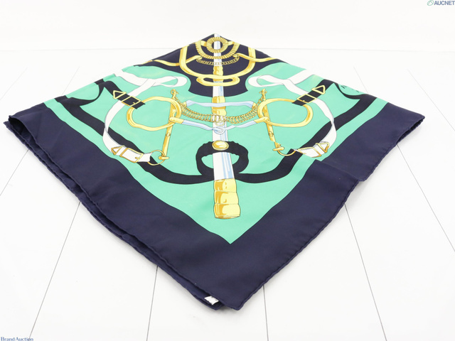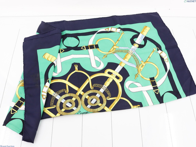 シルクカレ90 エプロンドール 黄金の拍車 グリーン ネイビー