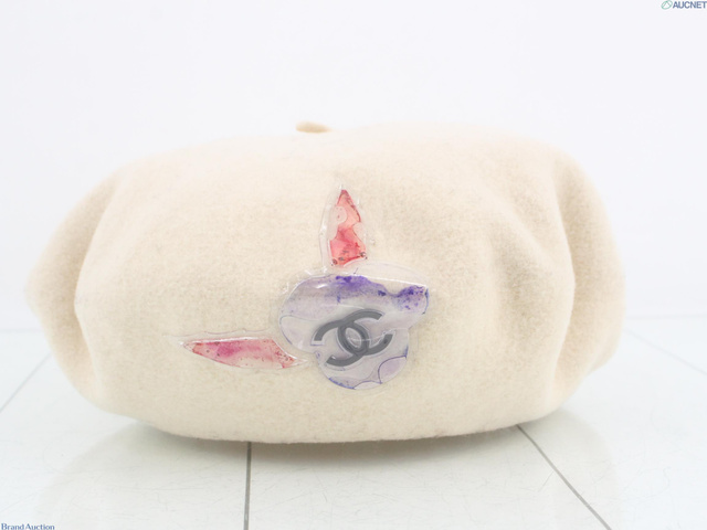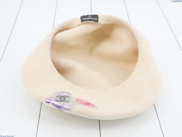 シャネル ベレー帽 ホワイト ベージュ カメリア(小物)・帽子