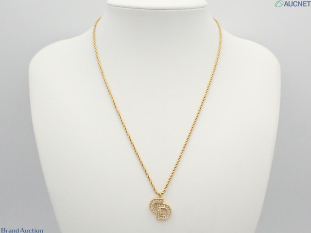 CDロゴ ラインストーン ネックレス ゴールドカラー