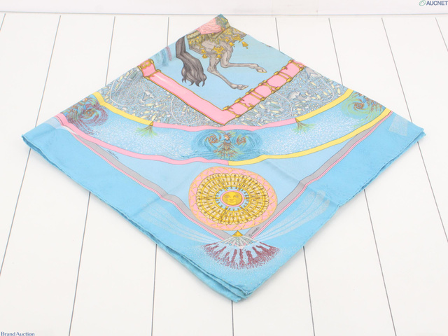 カレ90 スカーフ シルク ライトブルー