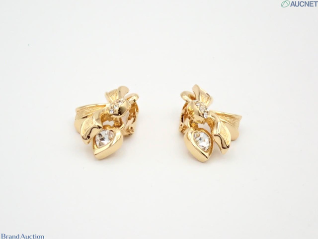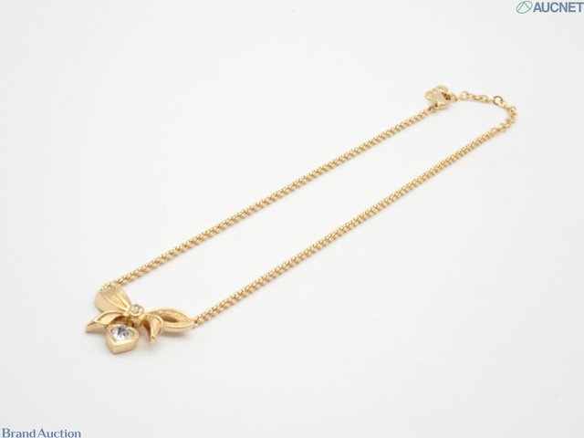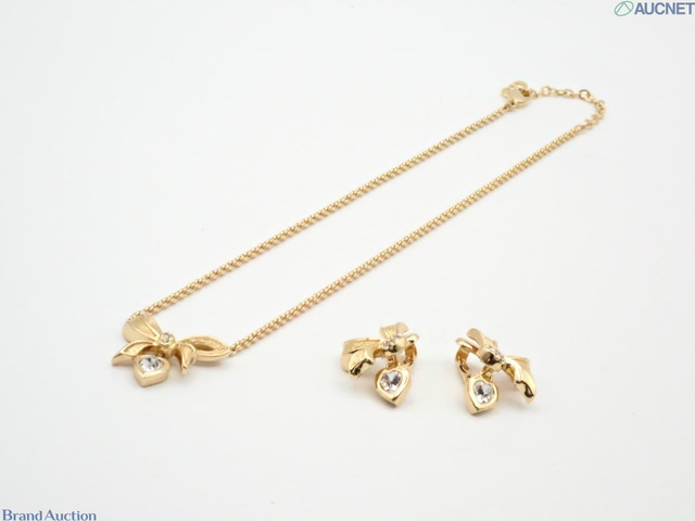 ハート リボン ネックレス イヤリング 2点セット ゴールド ラインストーン